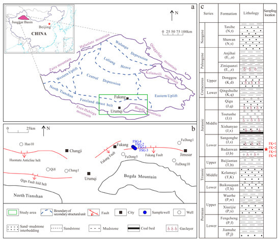 - Fu, H.J.; Tang, D.Z.; Xu, H.; Xu, T.; Chen, B.L.; Hu, P.; Yin, Z.Y.; Wu, P.; He, G.J. Geological characteristics and CBM exploration potential evaluation: A case study in the middle of the southern Junggar Basin, NW China. J. Nat. Gas Sci. Eng. 2016, 30, 557–570. [Google Scholar] [CrossRef]