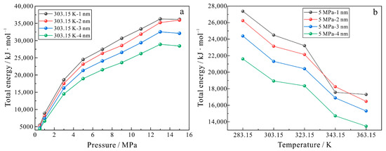 - The total diffusion energy increases with increasing pressure; however, the total diffusion energy tends to decrease with increasing temperature and pore size. The diffusion activation energy decreases with decreasing pore size.