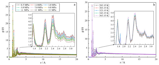 - The radial distribution function has been used to study the radius of action of the methane and C atoms in the coal molecule. The lower the pressure, the larger the effective radius; the higher the temperature, the more significant the diffusion and the larger the effective radius.