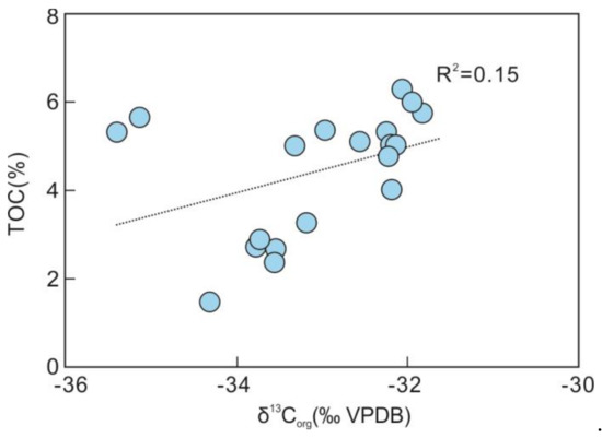 Crossplot of δ13Corg and TOC contents for the Meiziwan section.