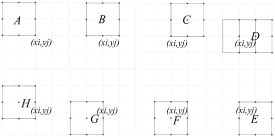All the covered by build the set , at the same time, there are eight windows surrounding the window , named by , , , , , , , (Figure 5), and the mean square-deviation values covered by these windows build the corresponding sets, including , , , , , , , , respectively.