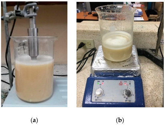 Preparation of nanoclay in ultrasonic processor (a) and magnetic stirrer (b).