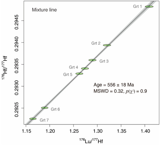 Mixture Lu–Hf errorchron diagram for the seven garnets.