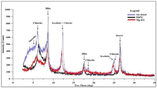- Moore, D.M.; Reynold, R.C. X-ray Diffraction and the Identification and Analysis of Clay Mineral. Oxford University Press: Oxford, UK, 1997; p. 378. [Google Scholar]