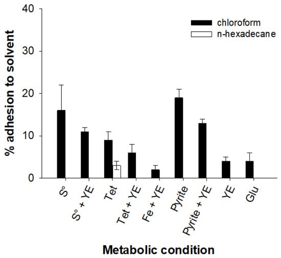 - Castro, C.; Donati, E. Effects of Different Energy Sources on Cell Adhesion and Bioleaching of a Chalcopyrite Concentrate by Extremophilic Archaeon Acidianus Copahuensis. Hydrometallurgy 2016, 162, 49–56. [Google Scholar] [CrossRef]