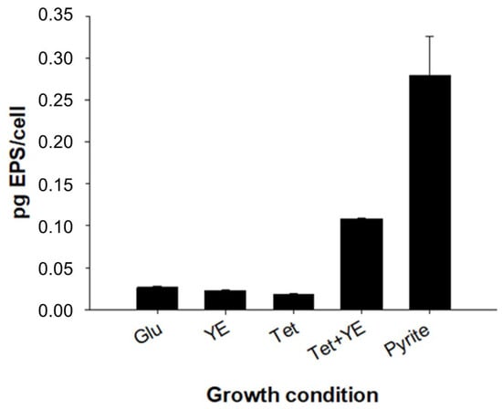 - He, Z.; Yang, Y.; Zhou, S.; Hu, Y.; Zhong, H. Effect of Pyrite, Elemental Sulfur and Ferrous Ions on EPS Production by Metal Sulfide Bioleaching Microbes. Trans. Nonferrous Met. Soc. China 2014, 24, 1171–1178. [Google Scholar] [CrossRef]