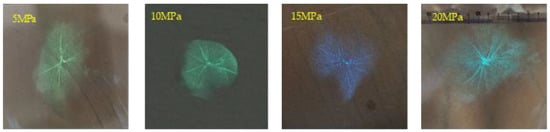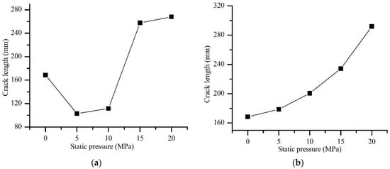 - The direction of static pressure has a significant effect on the distribution of cracks in sandstone under the effect of PHVD. When the applied static pressure is normal to the discharge channel, the cracks concentrate on the tensile stress zone around the discharge channel and tend to propagate along the direction of the applied static pressure. Cracks are difficult to initiate and propagate in the zone of compressive stress concentration. When the applied static pressure is parallel to the discharge channel, it can induce uniformly distributed tensile strains, and the cracks present a radial distribution, which matches the case without an applied static pressure.