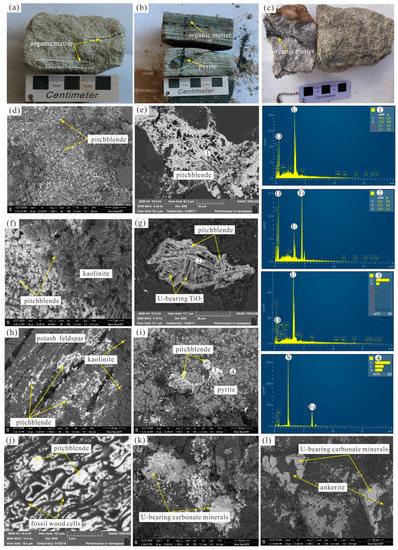 - Chen, L.; Chen, Y.; Feng, X.; Li, J.G.; Guo, H.; Miao, P.; Jin, R.; Tang, C.; Zhao, H.; Wang, G.; et al. U occurrence state in the Tarangaole area of the Ordos Basin, China: Implications for enrichment and mineralization. Ore Geol. Rev. 2019, 115, 103034. [Google Scholar] [CrossRef]