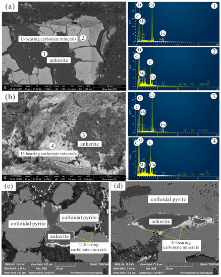 4.2. Chemical Composition of the U-Bearing Carbonate Minerals