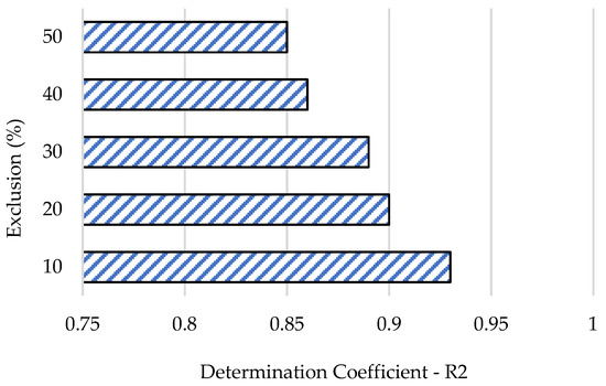 Coefficient of determination data from 10 to 50% samples exclusion.