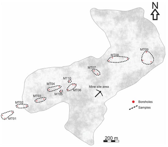 Schematic mine site map showing the relative geographic location of the boreholes and samples.