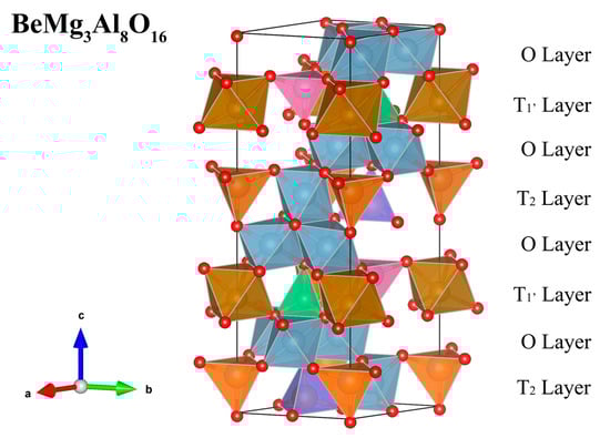 - Malcherek, T.; Schluter, J. Crystal Structure of Cr-bearing Mg3BeAl8O16, a New Polytype of Magnesiotaaffeite-2N’2S. Acta Crystallogr. Sect. E Crystallogr. Commun. 2016, 72, 1060–1063. [Google Scholar] [CrossRef]