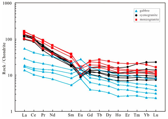 Chondrite-normalized REE patterns of intrusive rocks (normalizing factors are from [43]); Chondrite compositions are from [44].