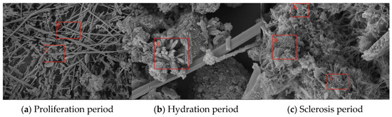 4.4.3. Characterization of the Morphology of the Hydration Products
