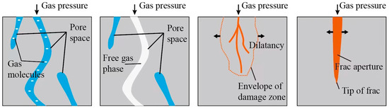 Based on the microstructural conceptualization of a low-permeability rock mass, Marschall et al. [16] summarized four mechanisms of gas transport and breakthrough: