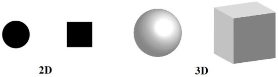 The mathematical morphology method usually uses a probe, which is referred to as a structural element (SE) to read the information contained in an image. When the SE moves across each pixel of an image, the interaction provides information about the structural characteristics such as the shape and size. Figure 7 shows an SE that is commonly used in 2D and 3D cases.