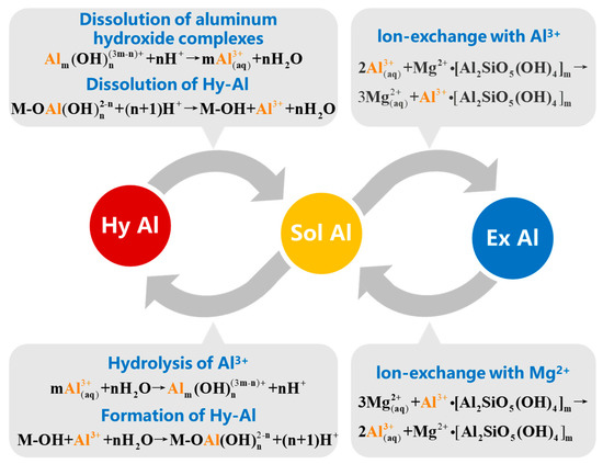 21]. An acidic inorganic salt leaching agent is usually used in the leaching process of ion-adsorption rare earth ore, and the leaching process may involve aluminum in three forms: Sol-Al, Ex-Al, and Hy-Al, which, however, have been rarely reported. For instance, Yang X. L. et al. [