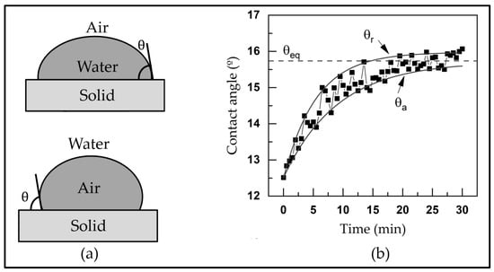 - Neumann, A.W.; Good, R.J. Techniques of measuring contact angles. In Surface and Colloid Science; Good, R.J., Stromberg, R.R., Eds.; Plenum Press: New York, NY, USA, 1979; pp. 31–91. [Google Scholar]