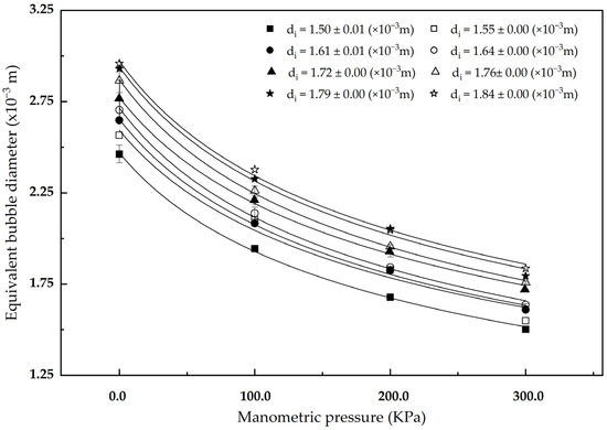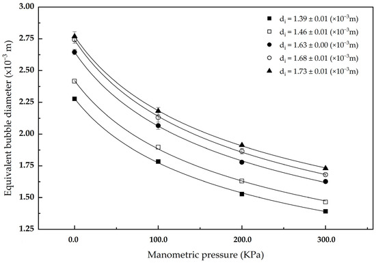 4.2. Effect of Pressure on the Equivalent Bubble Diameter