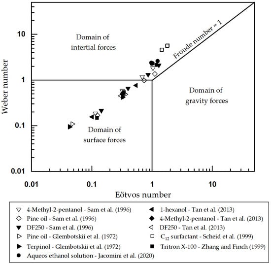 - Datta, R.L.; Napier, D.H.; Newitt, D.M. The properties and behavior of gas bubbles formed at a circular orifice. Trans. Inst. Chem. Eng. 1950, 14, 3–16. [Google Scholar]