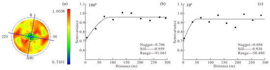 Table 5). The ranges in the 100° and 10° directions are 91.061 and 50.480 m, respectively, and the lg(Zn/Pb) values have a longer spatial correlation range in the 100° direction.