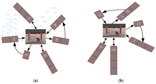 The cross-operation mode is 2-opt*, that is, the random algorithm, as shown in Figure 8. The specific implementation method involves assuming the working surface , and the distribution route , the distribution route . Using 2-opt * crossover to generate a new delivery route , . After the crossover operation, the distribution scheme corresponding to the robot path should meet the relevant constraints. If not, the crossover operation should be re-performed. The objective function value and crowding degree of individuals after the exchange are calculated and arranged in descending order. The parent population is generated by the elite strategy.