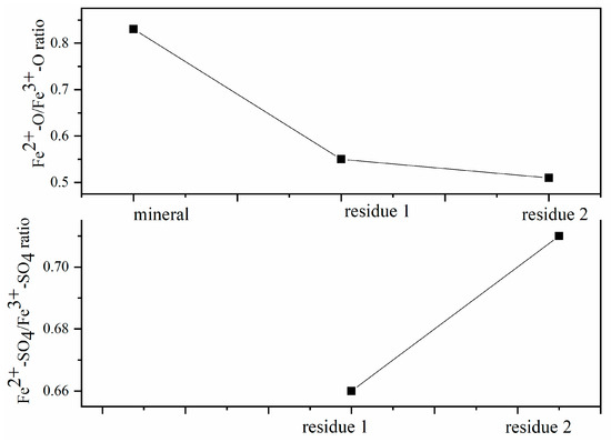 Fe2+-O/Fe3+-O ratio and Fe2+-SO4/Fe3+-SO4 ratio on residues surface.