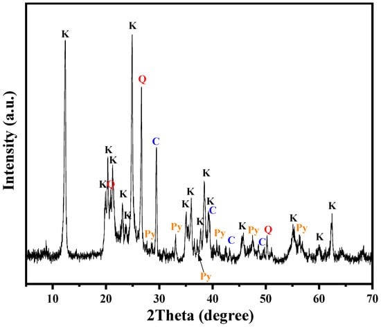 XRD pattern of the KAS (K—kaolinite, Q—quartz, C—calcite, Py—pyrite).