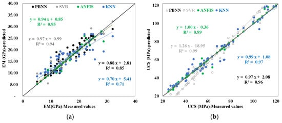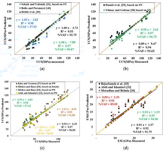 - Armaghani, D.J.; Amin, M.F.M.; Yagiz, S.; Faradonbeh, R.S.; Abdullah, R.A. Prediction of the uniaxial compressive strength of sandstone using various modeling techniques. Int. J. Rock. Mech. Min. 2016, 85, 174–186. [Google Scholar] [CrossRef]
