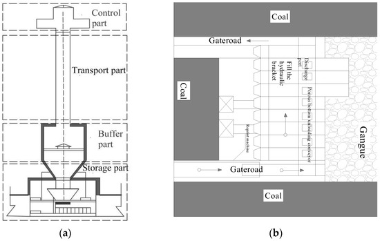 Disadvantages: Firstly, the transportation efficiency of the backfilling material is low due to the fact the mixed slurry always encounters segregation easily during the transportation process. The solid aggregate cannot be transported any further through the pipeline without floating in the water. Secondly, the activation efficiency is low because the water bleeding during the activation stage in the gob is fairly time consuming and, thus, a relatively long time must be spent for the slurried material’s consolidation. In addition, the water recycling is also complicated, because the fine particles (i.e., mud) exuded together with water from the initial hydraulic fills have to be removed in the settling pond before the water is reused in the next backfilling cycle. As a consequence, the slow backfilling procedure cannot match the increase in the moving speed of the coal-mining face. Thirdly, the control effect on the overburden strata movement is unachievable, obviously because the gob space is always difficult to be fully filled by this slurried material due to the fact that a large amount of free water flows away from the gob during the activation stage. Additionally, the thickness of the loose aggregate after water bleeding will also be compressed further by 10%–20%. Therefore, the subsidence coefficient of the ground controlled by this hydraulic backfill material is commonly kept within a range of 0.1–0.3 [26,27]. Last but not least, the cost of recycling the water, removing the fine particles and constructing a waterproof floor and water-permeable walls also weakens the economic feasibility of this backfill mining method.