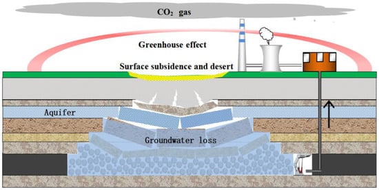 At the beginning of the present century, green mining, a comprehensive methodological framework, was developed by considering the challenges and advances in Chinese underground coal mining, as shown in Figure 1. Coal is an important fossil resource providing the necessary energy and derivatives for social and economic development, especially in China, accounting for more than 60% of the primary energy consumption [1]. The majority of coal resources are excavated by underground mining rather than surface mining because of the large thickness of the overburden strata and the high complexity of the geological conditions. Extensive underground coal mining inevitably causes many problems. First and foremost, the in situ stress in the surrounding rock around the excavation will redistribute after the coal resource is extracted. As a result, the roof strata over the gob will curve, break and move, and then this kind of strata movement transfers layer by layer from the bottom up and moves gradually away from the disturbance source (i.e., coal face) until a new balance both in the stress and structure is achieved. During these adjustments of the stress and rock structure, a series of problems will often be encountered, including gas release and explosion, groundwater recession and inrush, surface subsidence and construction damages [2]. Secondly, coal gangue will also be produced during underground coal mining resulting from a large number of roadways in the rock strata that have to be excavated for the purposes of transportation and ventilation. A large amount of coal gangue deposited on the ground surface not only causes air pollution on account of spontaneous combustion but also occupies farmland owing to gangue dump disposal [3]. Last but not least, a certain amount of coal will be leftover during mining processes, such as coal pillar supports, broken coal loading and transportation. The coal left underground can itself likely combust as well and thus trigger a fire hazard [4]. Additionally, coal waste because of coal pillar supports always contributes to the low coal resource recovery in China [5]. The abovementioned challenges associated with underground coal mining result in serious personal casualties and property loss. In recent decades, the increasing social concern regarding ecological and health risks has led to the implementation of more advanced mining technology and theory in underground coal mining. In 2003, based on a comprehensive consideration of the challenges and progress of underground coal mining in China, Qian et al. proposed a green mining concept aimed at solving the abovementioned series of challenges arising from underground coal mining in which backfill mining can minimize mining-induced hazards and maximize the recovery of coal resources. [6].