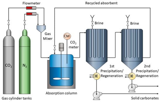 In the preparation process, nitrogen gas, a nonreactive gas, is utilized to flush the regenerated blend of alkanolamine, removing the byproduct of acid gas before the absorbent is ready for another CO2 absorption cycle []. The regenerated absorbent is repeatedly employed until no precipitated carbonate is further generated.