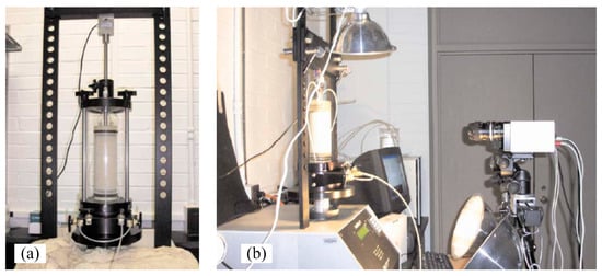 - Chaney, R.; Demars, K.; Macari, E.; Parker, J.; Costes, N. Measurement of Volume Changes in Triaxial Tests Using Digital Imaging Techniques. Geotech. Test. J. 1997, 20, 103. [Google Scholar] [CrossRef]