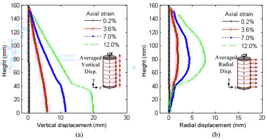 - Cil, M.B.; Alshibli, K.A. 3D analysis of kinematic behavior of granular materials in triaxial testing using DEM with flexible membrane boundary. Acta Geotech. 2013, 9, 287–298. [Google Scholar] [CrossRef]