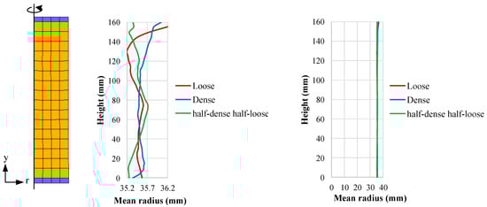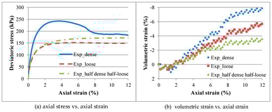 3.1. Experimental Behavior of Dense, Loose, and Half-Dense Half-Loose Specimens