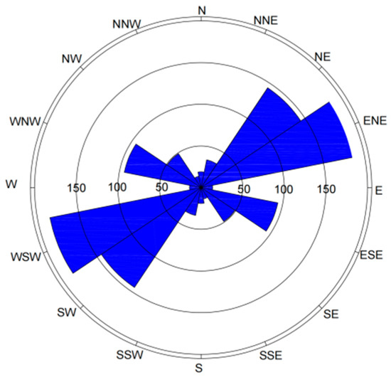 Rose map of linear geological formations. (The letters in the diagram indicate the orientation).