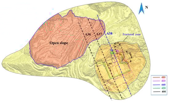 - Zhao, Y.; Yang, T.H.; Bohnhoff, M.; Zhang, P.H.; Yu, Q.L.; Zhou, J.R.; Liu, F.Y. Study of the rock mass failure process and mechanisms during the transformation from open-pit to underground mining based on microseismic monitoring. Rock. Mech. Rock. Eng. 2018, 51, 1473–1493. [Google Scholar] [CrossRef]