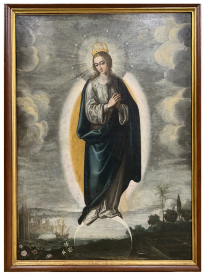 - Parejo Delgado, M.J. La iconografía de la Inmaculada Concepción en las parroquias sevillanas. In La Inmaculada Concepción en España: Religiosidad, Historia y Arte, Symposium Proceedings, Bd. II; Campos, F.J., Ed.; Real Centro Universitario Escorial-María Cristina, Ediciones Escurialenses San Lorenzo del Escorial: Seville, Spain, 2005. [Google Scholar]