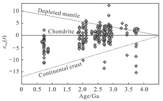 Summary of εNd(t) isotope data of BIFs through Earth’s history. Data of εNd(t) values of BIF is from [86,87,88,89,90,91].