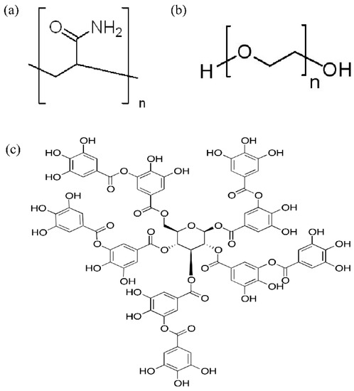 Molecule structure: (a) PAM; (b) PEO; (c) TA.