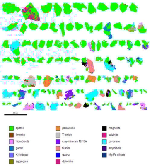 - Barros, L.A.F.; Ferreira, E.E.; Peres, A.E.C. Floatability of apatites and gangue minerals of an igneous phosphate ore. Miner. Eng. 2008, 21, 994–999. [Google Scholar] [CrossRef]