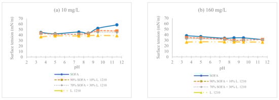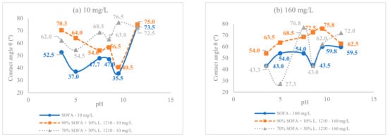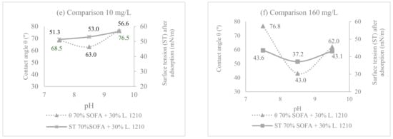 3.2. pH Effect on the Surface Tension and Contact Angle