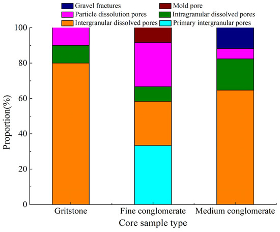Proportion of different types of pores in tight glutenite samples.