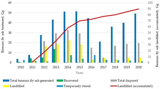 Biomass fly ash (10 01 03) generation, recovery, and disposal in Poland, in Gg, based on [10,11].
