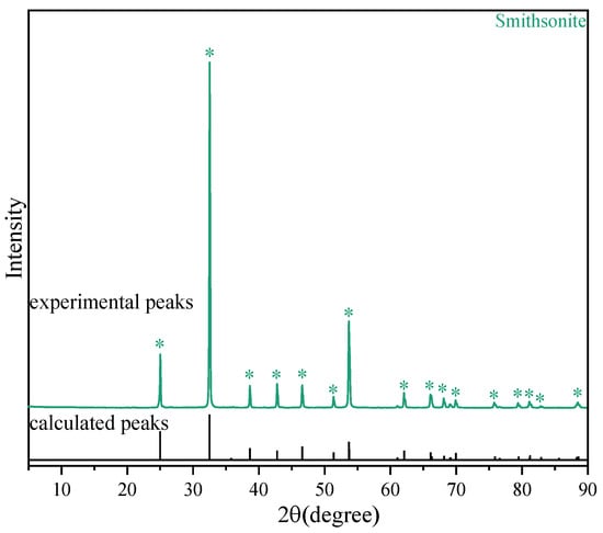 XRD pattern of smithsonite. “*” is peaks of wave only, and no other meaning, experimental datas compared with calculated datas.