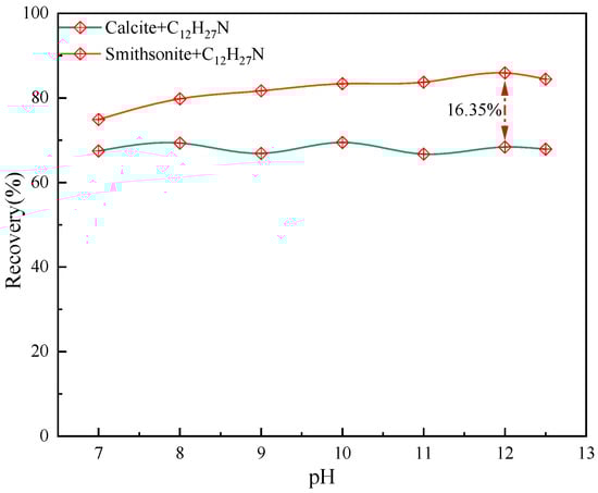 Flotation separation results of smithsonite and calcite as a function of pH.