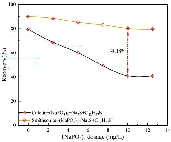 Effect of sodium hexametaphosphate dosage on the flotation of smithsonite and calcite.