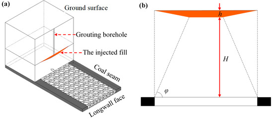 In civil and mining engineering, grouting technology is one of the most important methods to maintain the stability of the ground surface, e.g., reinforcing fractured rock foundation, water-rich and soft strata, karst cave areas, and other fractured rock areas [1,2,3,4]. Underground mining leads to the destabilization of strata, and the surface will have a wide range of collapse [5,6,7]; sometimes mining even cause landslides [8,9,10,11], which will undoubtedly produce great potential danger to public safety [12,13,14,15,16]. An effective method of maintaining the stability of the surface in mining areas is filling the mining-induced space by grouting [17,18,19,20], thereby suppressing the overburden structural instability induced by coal mining [21,22,23].