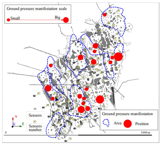 3.2.3. Distribution Law of Ground Pressure Manifestation Area
