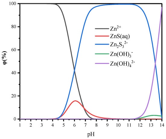 The effect of pH on the distribution of dominating species on the dissolved sphalerite’s surface.